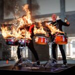 Pärast väiksemat pausi jätkusid esinemised aprillis. Kohe pärast Taimaalt naasmist toimus suur Trummi- ja tuleshow koos Siim Jõgiojaga, Tallinna lennujaama uue angaari peol. Võimas ruum, tugev energia ja ohtralt pürotehnikat – tõeline elamus. Aitüma Frank Events korraldamast ja kaasamast.