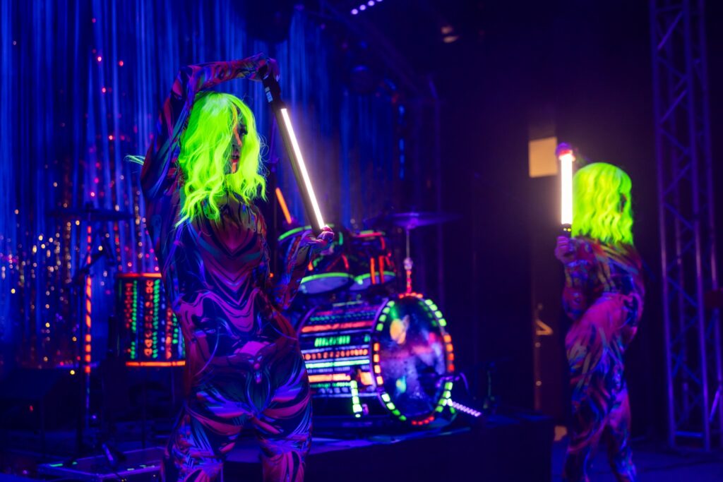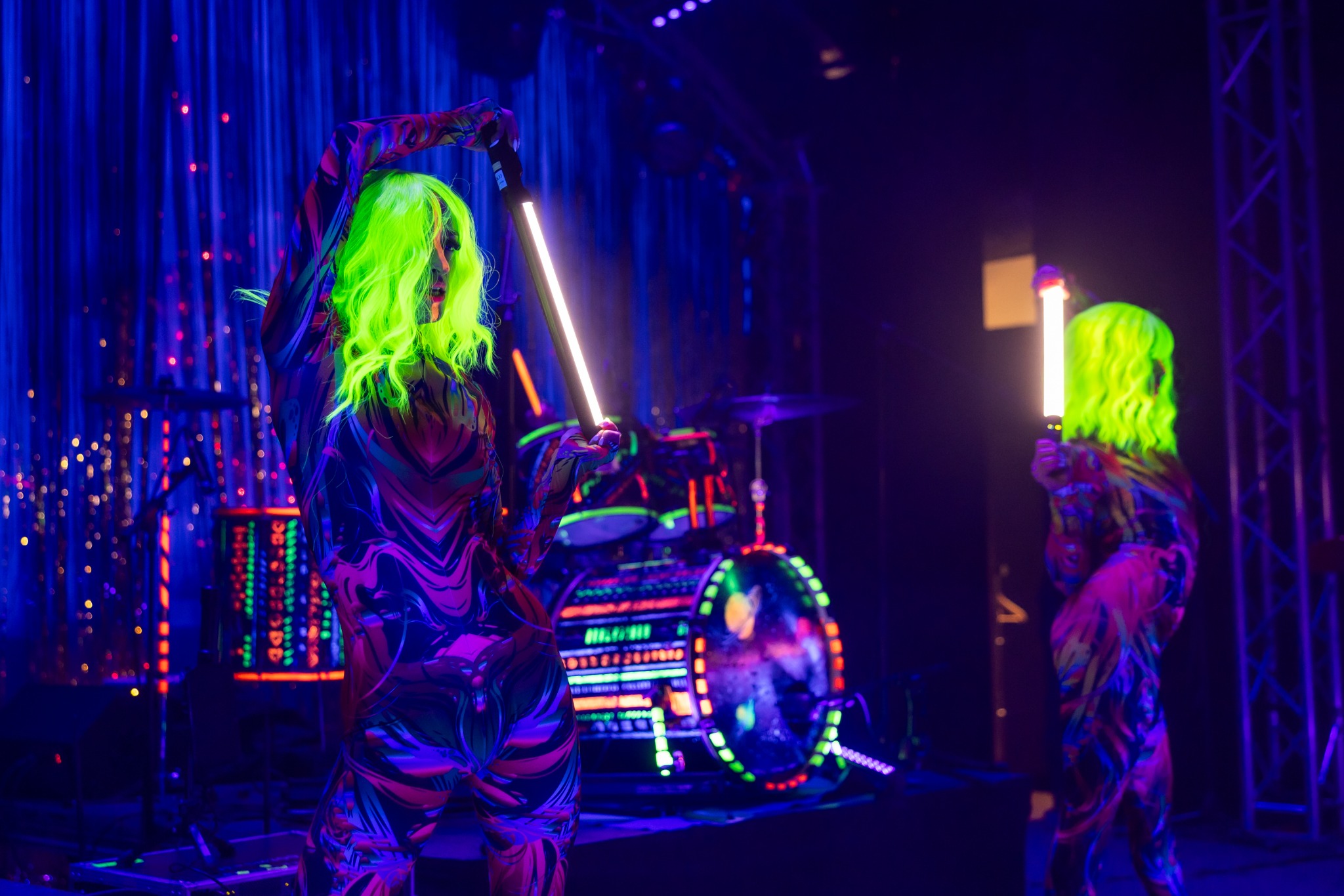 LED-kostüümid, UV-värvid, ägedad trummid ja professionaalsed tantsijad loovad futuristliku elamuse, mis töötab ideaalselt: